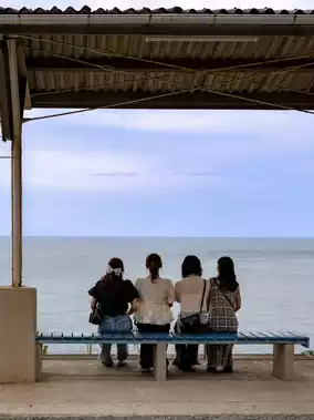 The tranquil sea and nostalgic station building create a scene straight out of a movie. Be sure to experience it.