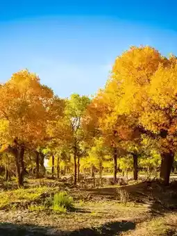 🍂 Ejina Populus Euphratica Forest Tourist Area: The 3,000-year-old Populus euphratica forest is even more dazzling in the golden autumn, as if you are in a golden fairy tale world.