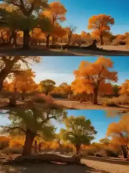 ✔️ Desert Populus Euphratica Forest: The intertwining of poplar trees and desert creates a strong sense of history, making photos feel like wild blockbuster scenes!