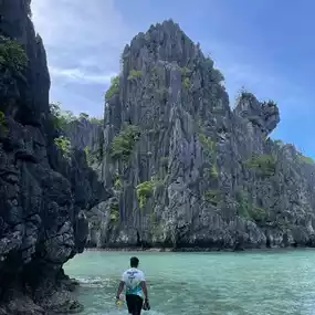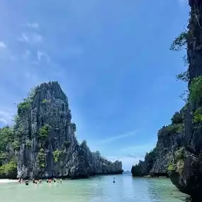 The Hidden Beach in El Nido is an EXCEPTIONAL haven, and my FAVORITE in my 4 day El Nido Trip. To arrive, you must traverse azure waters 🌊 on a boat 🚤, then swim through a narrow passage. Once there, what awaits is a extraordinary scene of calm waters and a pristine beach, encased by towering limestone formations 🏞️. This sheltered cove is perfect for serene dips in the sea and lazy sunbathing sessions under the tropical sun 🌞. The contrast of soft white sand against the stark rock formations is a sight to behold! As you float in the warm, crystal-clear water, it's easy to understand why the Hidden Beach is considered one of El Nido's most splendid treasures. 🌍💖