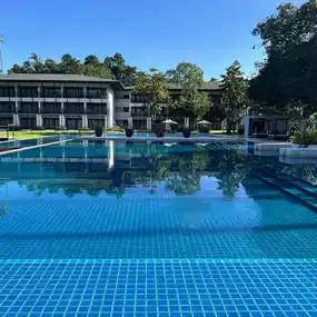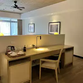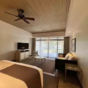 The room we stayed in was on the first floor and opened directly to the swimming pool and beach.