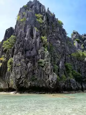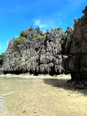 Hidden Beach lives up to its name tucked behind towering limestone cliffs on Matinloc Island, it can’t be seen from the open sea. To reach it, you need to swim through a narrow opening between rocks, which makes the experience feel like a little adventure. Once inside, you’ll find a peaceful cove with soft white sand, crystal-clear water, and calm waves perfect for floating and relaxing. It’s also a great spot for snorkeling with colorful fish and coral around. Part of El Nido’s Tour C, this quiet escape is perfect for nature lovers looking for something unique and serene.