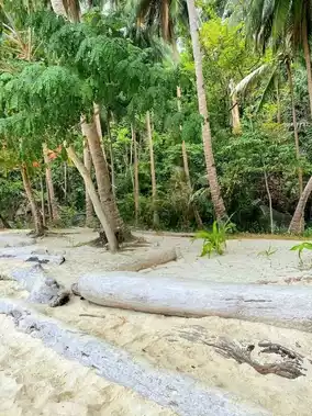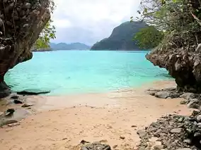 Pasandigan Cove is a peaceful, lesser-known beach on Cadlao Island, just a short boat ride from El Nido town. It’s a beautiful spot with soft white sand, clear blue water, and towering limestone cliffs all around. The beach is lined with coconut trees that give off a calm and relaxing vibe. It's perfect for swimming, snorkeling, or simply enjoying the quiet away from the more crowded islands. Some tours even let you explore a nearby small cave. If you're after a simple and laid-back beach day, Pasandigan Cove is a lovely choice.##pasansigancoveelnido