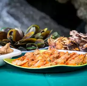 El Nido town is vibrant with many restaurants, cafés and local shops lining its alleys and the main beachfront. The local cuisine is delicious and highly recommended with many surf and turf options available.