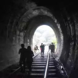 Blows a whistle and signals you to move away from the train tracks. It is a slow train, but it is still better to be careful when taking pictures, right?🚇