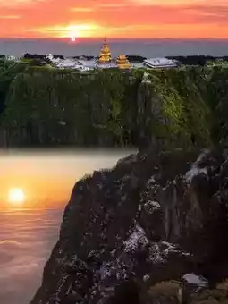 There is a copper temple built here, and from the side of the temple, you can observe the four wonders of the Golden Summit—sunrise, sea of clouds, Buddha's light, and divine lamp. The most magical is the 'Buddha's light', which can sometimes be seen when the wind is calm and the sun is bright, usually after two or three o'clock in the afternoon. Looking down from the Sheshen Rock on the Golden Summit, one may see a colorful halo floating in the clouds with their own shadow in the center, moving with the person without separation.
