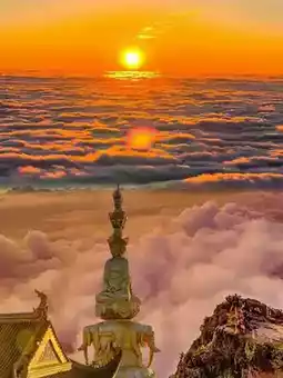 Mount Emei, standing in the southwestern part of the Sichuan Basin, is one of the four famous Buddhist mountains in China, a national scenic area, a national 5A-level tourist attraction, a World Cultural and Natural Heritage site, and a World Heritage site for both nature and culture. Its main peak, Wanfo Top, is 3099 meters above sea level. From the foot to the top of the mountain, there are cascading waterfalls and flowing springs, and the scenery is serene. It has long been known as 'Emei the Beauty under Heaven'.