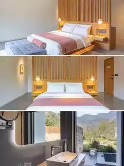 ♨️Recommended to stay in a private hot spring room, step out of the room to enter the warm pool, enjoy soaking in the embrace of the forest, relieve fatigue, it's a high-end and relaxed wild luxury experience