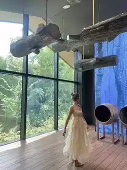 The most fortunate thing was that in addition to the opening point of the Shinagawa-kaku Waterfall, which is already very photogenic, this time I also encountered the newly completed art installation created with master designer Fujiko. I heard that it is open for a limited time! I am so lucky. Walking into the clouds is like walking into a fairyland, or like standing on the top of Mount Emei surrounded by clouds. Behind us is the peaked Mount Emei, and we are moved by the beauty of nature.