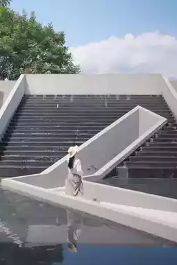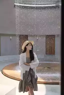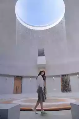 The interior space is full of design. The round dome changes with the seasons and light and shadows. It brings in a piece of sky. The water of the waterfall pours down. You are lucky to see the sundial here. It is also very photogenic.
