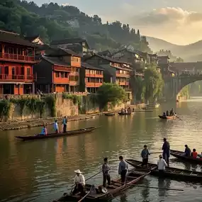 Luomu Ancient Town also preserves a rich folk culture. During festivals, various traditional activities are held, such as dragon and lion dances and Sichuan opera performances. The dragon and lion dances are lively and exciting, with the giant dragon weaving through the crowd and the lion coming to life, drawing cheers from the audience. The Sichuan opera performances are even more spectacular, with the actors' superb skills and unique techniques, such as face-changing and fire-breathing, leaving a lasting impression. In addition, the ancient town has some traditional festival customs, such as ancestor worship during the Lunar New Year and dragon boat races during the Dragon Boat Festival. These customs, passed down for centuries, are an integral part of the ancient town's culture, allowing visitors to experience the unique charm of traditional folk culture.
