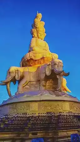 [Rose] When the early morning light shines on me, I set out on the road to the summit, just for that beautiful sunrise over the sea of clouds. Standing on the Golden Summit, watching the sun slowly jump out from the rolling sea of clouds, the golden light instantly illuminates the earth, and the Buddha's light is looming, as if you are in the heavenly palace, making you forget the troubles of the world. The 48-meter-high statue of Samantabhadra shines brightly in the clouds, emitting a sacred and solemn aura, shocking everyone's heart.