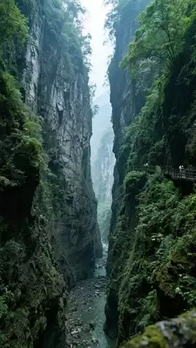 If you long for the secluded paradise described in "The Peach Blossom Spring," then we highly recommend this secret realm sealed by mountains for a thousand years—Earth Core Valley in Jianshi County, Enshi, Hubei. Here, the canyon is deep and the cliffs tower, with a tributary of the Qingjiang River winding through the earth's fissure. Suspension bridges hang in midair, plank roads cling to the cliffs, and looking up you see only a narrow strip of sky, like a crack in the earth. Surrounding this are scattered Tujia ancient villages and stone houses, with smoke curling from chimneys and the sounds of chickens and dogs—truly “China deep in the remote mountains.”