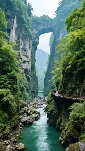 Or choose [Shimen River Earth Core Scenic Area] (65 RMB ticket): more spectacular narrow sky and floating bridge on water;