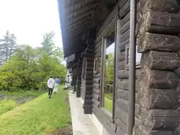 • The log cabin-style building and the walk past the fields to the entrance create a delightful and inviting experience.