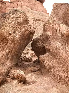 Charon Canyon is located between Almaty and the China border, near the Horgos port on the Chinese side, about 200 kilometers from Almaty city.