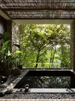 โ Forest hot spring pool, it's great to soak in the hot spring after hiking ๐