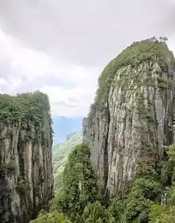 · Sheer Cliffs: The canyon walls on both sides are like they were carved by knives and axes, soaring into the clouds, covered with moss and vines that tell stories of the ages.