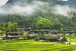 Mokker Gallery Bridge--Take a small train to the rice fields--Walk to the Tujia Hanging Buildings--Bamboo Pai River Tour--Moxiao Tower--Visit the Wuling Ganlan Museum