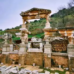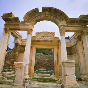 The concert hall 📸, various brands and symbols 📸, the avenue leading to the library, the Temple of Hadrian 📸, the Library of Celsus 📸, the Great Theatre 📸... there are many things to see and you can't miss them.