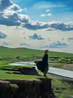 Looking at the blue sky, white clouds, wetlands, forests, cattle, and sheep