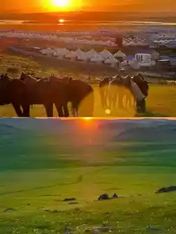 ◦ Afternoon: Arrive at Heishantou, a horseback riding paradise. Ride across the grassland under professional guidance, feeling free and unrestrained. Then visit a herder's home, change into Mongolian costumes, experience feeding lambs and milking cows, and enjoy Mongolian afternoon tea with milk tea, dried milk curds, and fried rice.