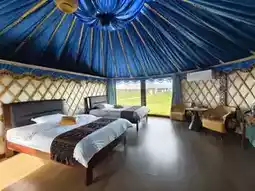 Although I have plenty of camping experience, this was my first time staying in a Mongolian yurt. The yurt at Jiali Tourist Ranch was quite luxurious (as seen in the photos), featuring two large beds that could accommodate a family of four. However, my travel companion and I each had a bed to ourselves, enjoying the entire yurt. The skylight can be opened with a remote control, making it convenient for stargazing at night, and the floor-to-ceiling windows offer a view of the outside scenery. The room is also equipped with air conditioning. The ranch also offers another type of yurt without a skylight, but I specifically wanted the deluxe version for a more indulgent experience—an occasional treat for myself!