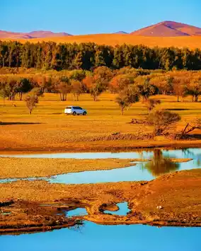 Depart early in the morning for the Birch Forest. In September, all the birch leaves turn yellow, and sunlight filters through the trees, creating light spots, like stepping into a fairy tale world; then visit the Divine Deer Park to feed reindeer, the fluffy little creatures are super therapeutic. Afterwards, drive along the Greater Khingan Mountains road to Mordaoga, enjoying continuous autumn forest scenery along the way. Stay near the scenic area at night to recharge for the next day's journey.