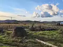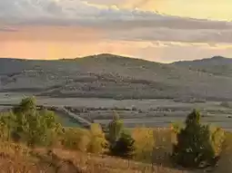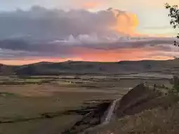 On the hillside, you can overlook the entire Enhe town with herds of cattle and sheep. We were lucky to see rain falling in the direction of Russia. Against the backdrop of the setting sun, the white curtain of rain turned pink—a rare and magnificent sight (photo 15).