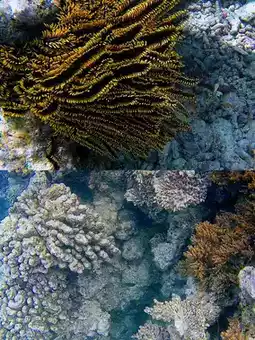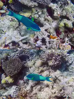 The coral reef is close to the water surface