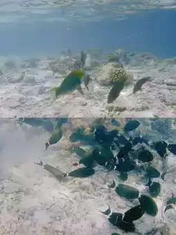Here you can see schools of tropical fish swimming through
