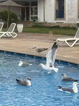 Seagulls soar freely with the sea breeze. They become a beautiful scenery on the ancient fortresses of Essaouira beach. Although there is concern about their droppings "suddenly appearing," this does not overshadow their beauty of free flight in the blue sky.