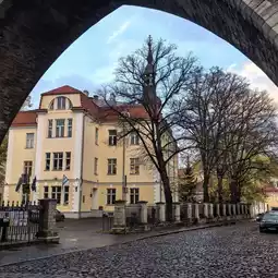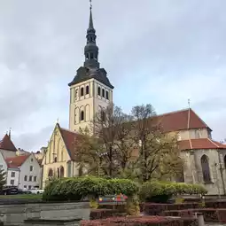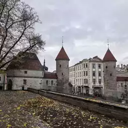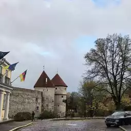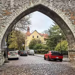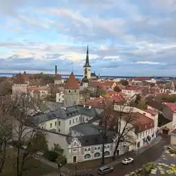 The moment we reached the observation deck, the rain miraculously stopped, and sunlight broke through! Looking down at the thousand-year-old Tamlin Old Town, the pointed spires, red rooftops, and golden trees appeared like a flowing golden painting 🌟
