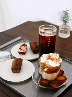 This cafe in Gusan-dong is famous for its financiers. Even my partner, who usually doesn't like financiers or baked goods, praised their financiers for being chewy, not overly sweet, and absolutely delicious! 😂 Especially, their signature drink comes with pieces of financier, and dipping them into the rich cream is a match made in heaven. You must try it! The tables are spaced out nicely, making it a great place for conversations. If you enjoy a calm and serene atmosphere, I highly recommend this spot. 😆