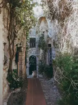 Once you enter the village, you'll find a maze of narrow cobblestone alleys, and walls covered in greenery and flowers that are truly beautiful.