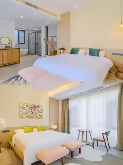The homestay has 3 floors and 8 rooms, each of which is very large. Bathtubs, smart toilets, and mini-fridges are all available. Some rooms have large terraces, some have access to the courtyard, some have direct access to the pool, and some have tatami mats. The views from the windows are different in each room.