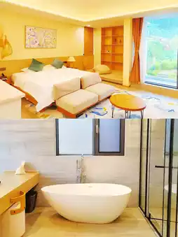 🌳The homestay has 3 floors and 8 rooms in total. Each room has a large bathtub🛁, smart toilet🚽, and a small refrigerator. Some have a large terrace, some have access to the yard, some have direct access to the swimming pool🏊♂️, and some have tatami. The scenery outside the window is different🌅