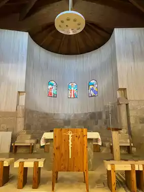 An Italian artist Gian Paolo Fantoni created the magnificent Serpentine Cross. It is symbolic of the serpent invoked by Moses in the desert and the cross upon which Jesus was crucified.