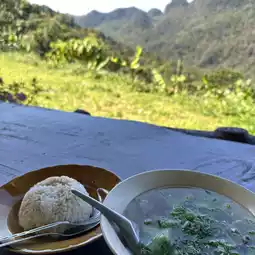 Stop for a break at the Suitang viewpoint and find something hot to eat to relieve the motion sickness. This was my first time driving up a mountain, and the road was quite brutal. On the way down from Doi Angkhang, I could smell the burning brake pads.