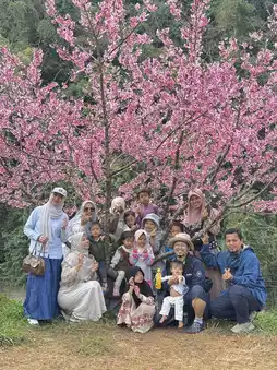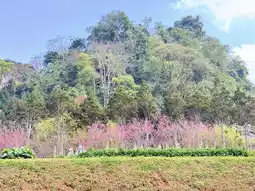❣️❣️ Located within the Ang Khang Royal Agricultural Station, this area features numerous Wild Himalayan Cherry trees scattered across various spots, making it easy to stroll around and take beautiful photos. The backdrop includes winter flowers and mountain peaks.