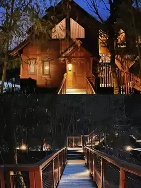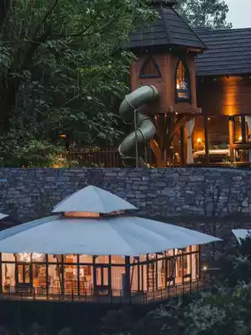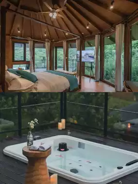 In the wild forest, the treehouse villas are located along the mountain road in the secret forest, with a sense of seclusion. When the city is still waiting for the leaves to turn yellow, the mountains have already become a beautiful picture.