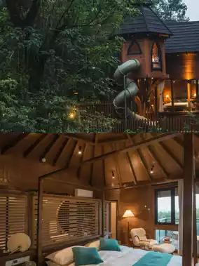 Wine is the rich heritage of thousands of years; God is the spirit of the Book of Songs; Bay is the pastoral life of today. Bacchus Bay is hidden in the valley south of Fang County, close to nature and life. 26 forest treehouses are scattered along the zigzag mountain road. Like a nest in the forest, the treehouses are embedded in the natural scenery, offering a great view and a private living experience. Most of the treehouses are round wooden houses, with a modern hotel-like interior. Comfortable bedding, natural-textured tables and chairs, and a quiet and pleasant mountain dwelling. The most stunning features are the panoramic floor-to-ceiling windows and the terrace bathtub. You can sit in your room and look out at the distant mountains and clouds, or step outside to enjoy the idyllic scenery. There are also 3 tent treehouses with simple and comfortable tatami mats. The bird feeder at the door attracts all kinds of birds in the morning, which is a unique experience.