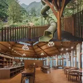 [DoubleHearts] The leisure area is divided into multiple areas according to different functions, including spaces suitable for parent-child play, rest gardens, platforms near the water, cafes, etc. These places are all in the valley and echo each other, forming a picture. Beautiful landscape painting.