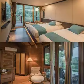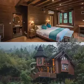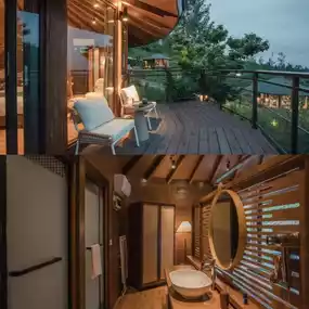 [DoubleHearts] There are a total of 26 tree houses here. They are distributed in a zigzag pattern along the mountain road. They are independent and do not interfere with each other. They are like bird's nests in the forest, perfectly integrated into the surrounding natural landscape. Each treehouse has excellent views and sufficient privacy. Most of them adopt a dome design. The interior environment is modern and comfortable, equipped with soft bedding and natural texture furniture.