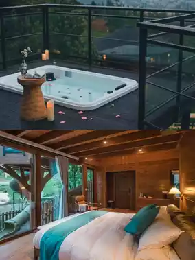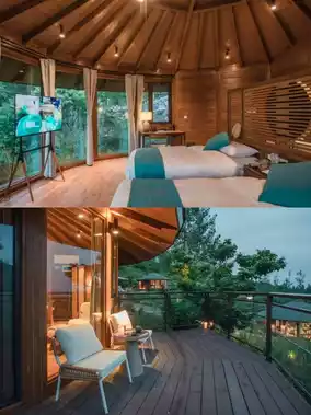 ✨There are 26 treehouses scattered in the forest, arranged along the mountain road. The exterior of the treehouses is full of wild luxury, while the interior environment combines modern comfort design, perfectly balancing wild luxury and comfort.
