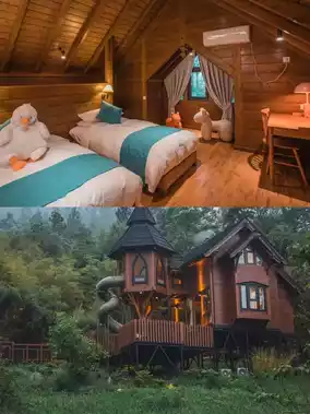 ✨Jiushenwan offers a variety of accommodation experiences, including forest cabins, family suites with children's slides, tent cabins, and forest treehouses. These accommodations are like stars scattered in the valley, distributed on three levels: high, medium, and low, forming a beautiful scene.