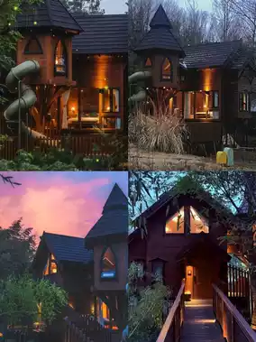 | A fairytale treehouse nestled in the mountains. Girls! It's at Dionysus Bay! A hidden wooden cottage homestay in the forest~