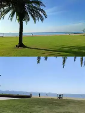 Enter through the main lobby, walk around back to reach the beach🏝️.