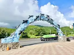 On the way from Pingtung to Taitung, you will definitely pass by this super beautiful convenience store on the South Link Highway. The seating area is made of transparent glass and you can see the endless coast. There is also dolphin-shaped art outside, which makes people unable to help but take several photos 🐬 and buy some tea on the way