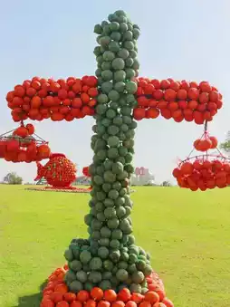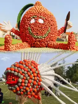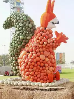 Opposite the small train station in front of the Flower Pavilion: Pumpkin Science Wall